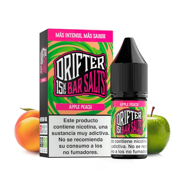 Drifter Bar Salts Apple Peach 10ml. Tiene un sabor afrutado que combina el sabor de manzanas jugosas con melocotones dulces, creando una experiencia de vapeo deliciosa y refrescante. Sí eres de los usuarios que prefieren sabores frutales dulces y refrescantes tienes que probarlo.